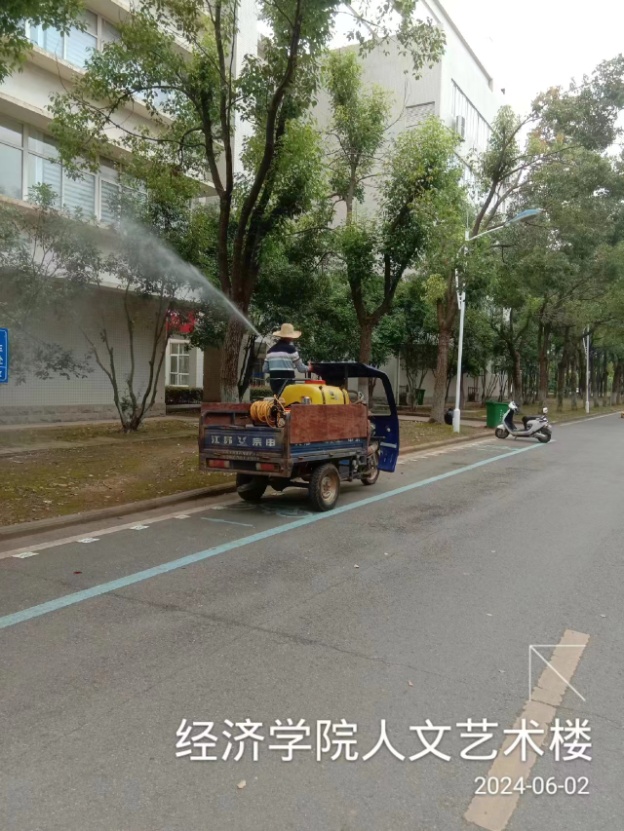 為避免打擾到師生正常的教學活動,工作人員利用周末休息時間集中消殺,對法商綜合樓、德馨樓、教學四號樓、教學五號樓、體育館、圖書館、實驗樓、實訓中心樓內及外圍散水、綠化帶進行全面的滅蚊工作。重點消殺部位包括教室、衛生間、樓梯間、走道、樓棟散水、綠化帶等易滋生蚊蟲的區域。