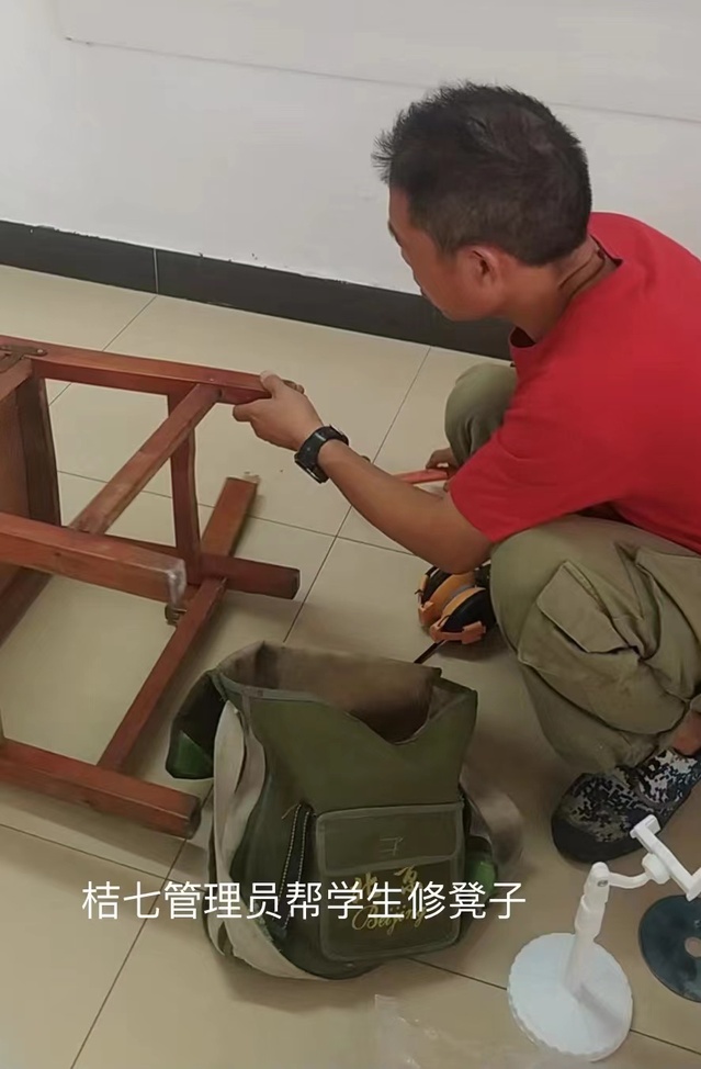 除了這些,還有桔七宿管員孫振偉幫助學生固定靠背椅、櫟三宿管員張文君幫助學生清理宿舍內的鏡子碎片、櫟四宿管員張燕幫助學生尋找丟失的耳機等等。