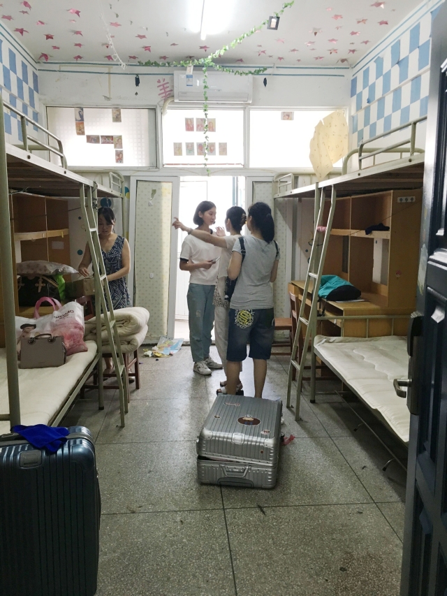 9月9日上午7點,在住宿服務接待咨詢點,工作人員耐心為新生及家長解答住宿問題,貼心為家長準備了學校周邊十余家酒店賓館的聯系方式,方便新生家長住宿;在竹三公寓東頭一卡通授權點,工作人員忙碌著為新生提供現場授權服務;在東、西區學生公寓,隨處可見身穿灰色T恤、佩戴藍色工作牌的工作人員穿梭在其中,力求為學生提供細致、周到的服務。在國際學術交流中心,工作人員正在為新生家長及學校各院系單位迎新工作人員準備工作餐,嚴把食品質量關,確保食品衛生安全;在體育館、教學樓、圖書館等區域,隨處可見保潔師傅們忙綠的身影,她們自發加大了保潔力度,只為給新生和家長提供良好的校園環境。