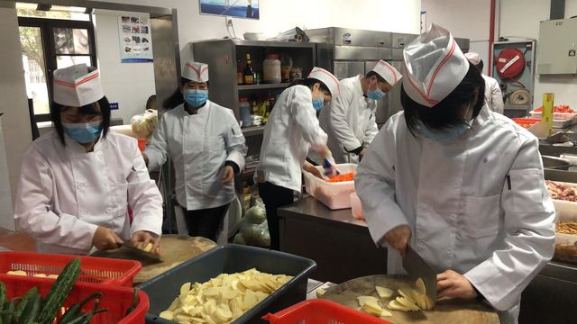 “稀飯裝好了嗎?趕緊放花卷吧!”,“再點(diǎn)一次數(shù),裝了多少盒了。”每天清晨,篤行樓管理部廚房里一番忙碌的景象。確認(rèn)好份數(shù)無誤,順利送餐后,大家稍作歇息,又開始清理臺(tái)面、摘菜洗菜,為中午的供餐做準(zhǔn)備。配餐小方隊(duì)在忙碌中精神抖擻,在忙碌中其樂融融,因?yàn)榇蠹抑来丝碳缲?fù)的責(zé)任。“隔離點(diǎn)人員的餐食可馬虎不得,這也是防疫戰(zhàn)的一項(xiàng)工作,我們得確保防疫一線工人員和隔離人員營(yíng)養(yǎng)到位,增強(qiáng)抵抗力,爭(zhēng)取防疫工作的早日勝利。”篤行樓總廚張朋如是說。