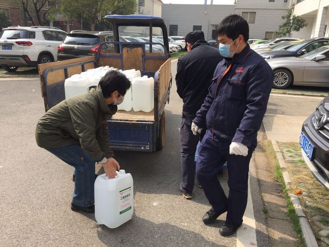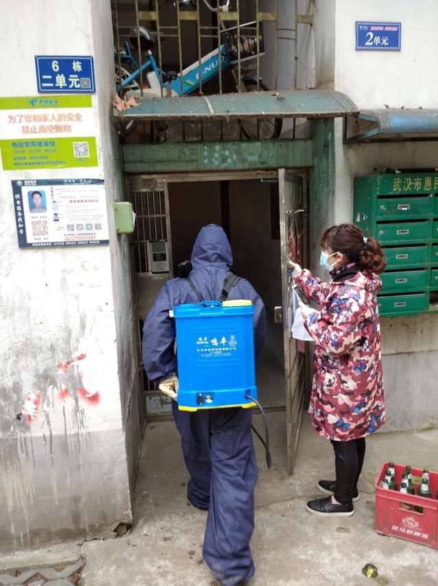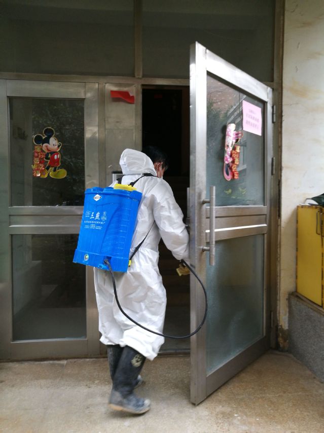 “疫情不退,我們不退!堅持做好家屬區消毒工作,為汀蘭苑筑起安全防護線,為打贏防疫攻堅戰貢獻力量。”——汀蘭苑綠化班長