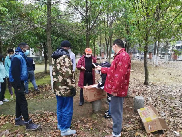 “這些孩子自我防護(hù)意識(shí)淡薄,在寢室呆不住,我真擔(dān)心他們外出不安全”“他們凌晨3、4點(diǎn)在搞聚會(huì),我實(shí)在不放心”,為此,溫國(guó)慶積極主動(dòng)與國(guó)際學(xué)院溝通,在院系老師的陪同下,溫國(guó)慶夫妻2人給學(xué)生送口罩、洗手液和各類(lèi)食品,并囑咐他們一定注意個(gè)人防護(hù)。同時(shí),溫國(guó)慶考慮到時(shí)差問(wèn)題,學(xué)生與家人聯(lián)系的需要,寢室每晚12點(diǎn)到4點(diǎn)熄燈,從技術(shù)手段上限制學(xué)生晚上聚會(huì),降低聚集感染危險(xiǎn)性。2月8日,學(xué)校實(shí)行全面封閉式管理,留學(xué)生不能出桂苑小區(qū),溫國(guó)慶夫妻就成了孩子們最依賴(lài)的人。送餐、送菜、送防護(hù)用品、生活必需品,只要需要,他們就會(huì)第一時(shí)間出現(xiàn)。孩子們每天最高興的事就是看到溫師傅,因?yàn)闇貛煾悼倳?huì)盡自己的全力幫助他們,給他們帶來(lái)溫暖,哪怕是幫接收網(wǎng)購(gòu)的食品,或送他自己制作的可口飯菜,這些都讓留學(xué)生們深深感動(dòng)。