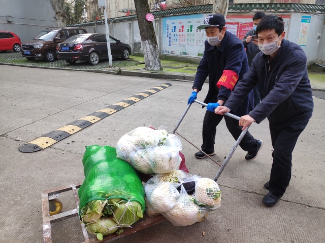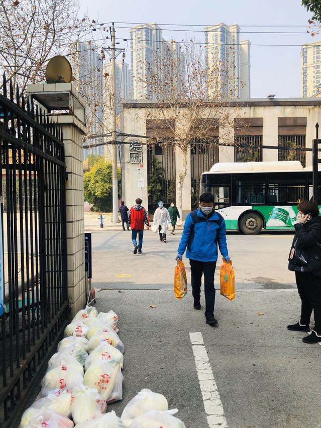 “惠民物資進小區,助力疫情攻堅戰!愿大家繼續加油,毫不放松持續作戰,相信我們很快就能迎接春日的暖陽。”——洪山校區秩序維護員許柏林,同時他也是消毒員。