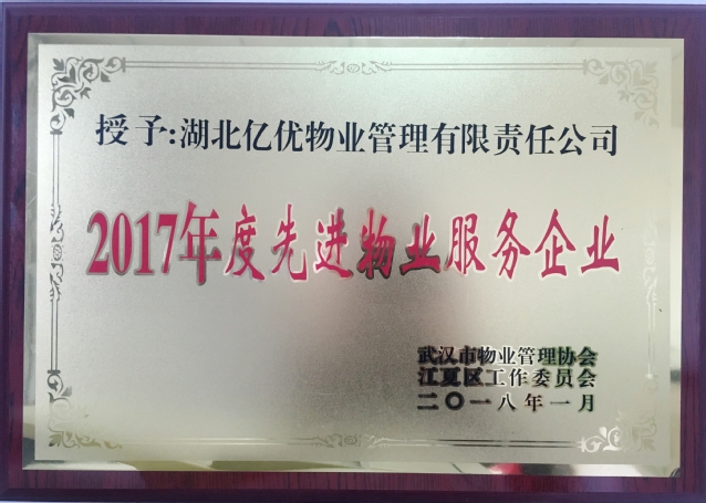 億優物業獲評武漢市江夏區“2017年度先進物業服務企業”