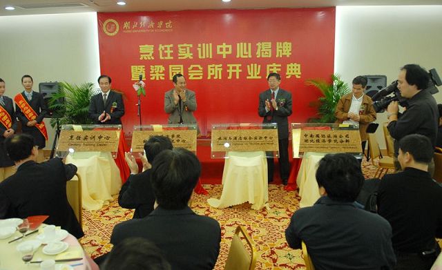 本網訊(記者 高瑋 攝影報道)10月28日上午11:20分,湖北經濟學院梁園會所門前人潮鼎沸、爆竹聲聲,花團錦簇,喜氣洋洋,形成了良好的開業氛圍。參加烹飪實訓中心揭牌儀式和梁園會所開業慶典的校領導有黨委書記周元武、院長許建國、副院長張奮勤、柯美錄、梁前德、黨委副書記廖長林,總會計師高臘生。