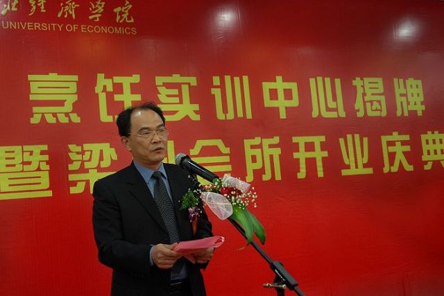 副院長張奮勤在開業慶典上發表講話。他指出,梁園會所是我校建設的一所準三星級接待中心、會所的主要功能是為學校教學、科研和學生家長提供服務,同時,為旅游與酒店管理學院學生提供實習基地,同時也為社會各界的各種會議、學術交流、和休閑提供良好的環境和條件。烹飪實訓中心和梁園會所的建設與發展,離不開在座的各位領導嘉賓及社會各界的大力支持,離不開教職工的共同努力。希望烹飪實訓中心和梁園會所全體職員強化管理,規范運作,熱忱服務,把烹飪實訓中心辦成學校開放性實踐教學平臺的實踐教學平臺的典范,把梁園會所辦成學校對外交流的新亮點!期待各位領導、嘉賓和各界朋友給予我校梁園會所和烹飪實訓中心更多的關注與支持!