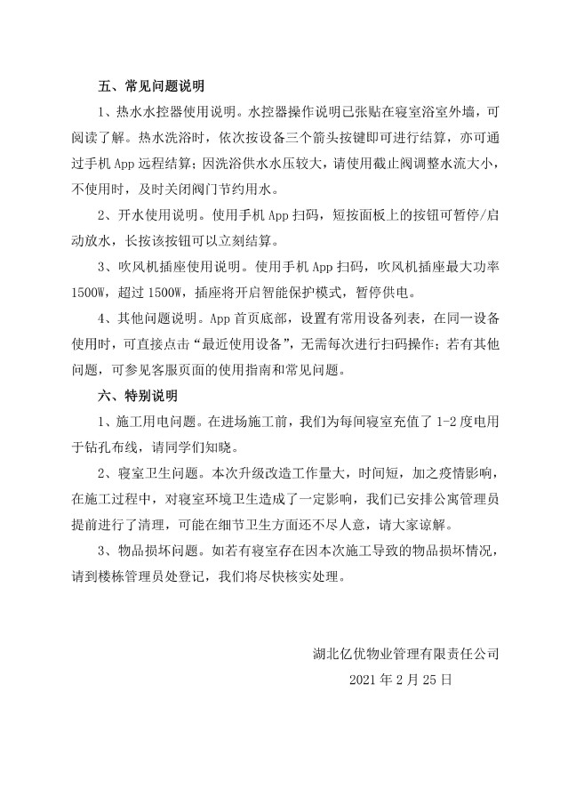 關于學生公寓生活服務設施智能控制終端“聯網式” 升級改造及使用的通知
