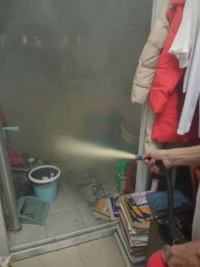 桔八管理員劉道鈞,當時正在洗漱,聽到學生求救后立刻沖到該寢室,實施滅火,最終在幾分鐘內將火勢撲滅。