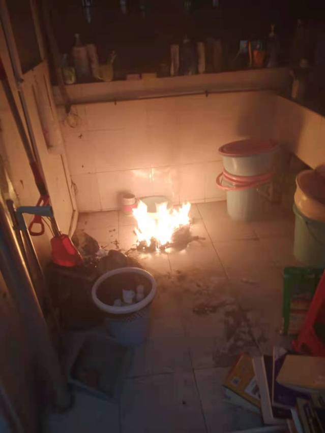 據了解,居住在桔八616寢室的學生田靖在寢室休息時,突然書包開始冒煙,她立刻將書包扔到洗漱間水池旁。在聽到書包里有響聲時,她緊急去把自己的書本拿了出來,之后一聲爆炸,書包開始自燃,同寢室學生連忙尋求管理員的幫助。