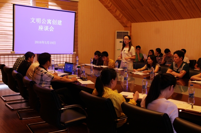 本網(wǎng)訊(通訊員 高瑋)為扎實(shí)推動(dòng)學(xué)生公寓文明創(chuàng)建工作,為廣大師生營(yíng)造一個(gè)神清氣爽的學(xué)習(xí)、生活環(huán)境,5月19日下午,公司與我校學(xué)工處聯(lián)合組織召開(kāi)了公寓文明創(chuàng)建工作座談會(huì)。總經(jīng)理來(lái)靖德、黨總支書(shū)記王水斌、副總經(jīng)理陳武、廖挺,學(xué)生工作處副處長(zhǎng)姚自平,校團(tuán)委辦公室主任郭倩倩以及學(xué)生社團(tuán)代表共計(jì)21人參加了座談會(huì)。質(zhì)量檢查部、物業(yè)服務(wù)部、公寓服務(wù)部、公共事務(wù)部等部門(mén)負(fù)責(zé)人參加了會(huì)議。會(huì)議由副總經(jīng)理陳武主持。
