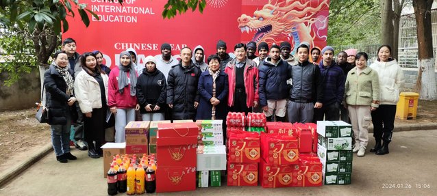 本網訊(通訊員 劉丹)隨著春節腳步的臨近,為全力做好留校留學生的關心關愛和服務保障工作,1月26日下午,億優物業公司副總經理張奎、公寓服務部經理劉丹、副經理李丹芳與國際教育學院領導一行參加慰問留學生活動。