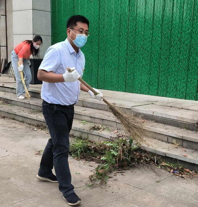 最后,全體黨員到汀蘭苑小區高層外核酸檢測點廣場開展了主題黨日實踐活動。黨員們分工協作,有的拿鐵鍬除草、鏟垃圾,有的用鋸子伐樹,有的清掃地面,有的清理雜物,有的收集垃圾......熱火朝天,干勁十足。經過近1小時清理,核酸檢測點廣場環境大變樣,更加干凈、整潔、空曠了,現場做核酸的居民紛紛點贊,還有汀蘭苑小區居民駐足與黨員們交流,表達感激之情,表示也想參與類似志愿服務。