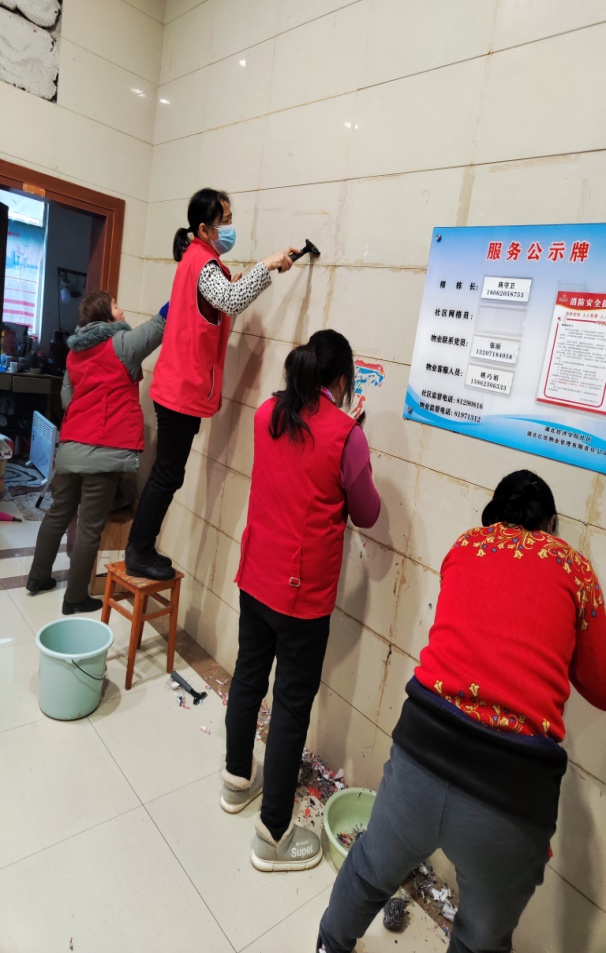 在部門(mén)的統(tǒng)一安排下,全體人員積極參與,對(duì)消防通道、公共區(qū)域雜物進(jìn)行全面清理;對(duì)單元門(mén)、走道、樓梯及扶手進(jìn)行除塵、擦拭并對(duì)玻璃門(mén)及電梯小廣告進(jìn)行徹底清理;對(duì)路面及綠化帶枯枝落葉、垃圾進(jìn)行地毯式清掃。遇到犄角旮旯,大家更是彎下腰、俯下身、徒手清理,充分發(fā)揚(yáng)了不怕苦、不怕累的精神。活動(dòng)過(guò)程中有部分住戶自發(fā)參與,在大家齊心協(xié)力之下,家屬區(qū)煥然一新,以全新的面貌迎接新年的到來(lái)。