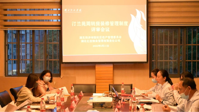 本網訊(通訊員 姚巧娟)2022年5月11日晚,汀蘭苑周轉房裝修管理制度評審會議在公司三樓會議室召開,公司黨總支書記王水斌帶領總經理助理高利霞、物業服務部經理賈學峰、汀蘭苑項目部項目經理張麗及有關工作人員,同湖北經濟學院社區住戶管理委員會14名樓棟長一起,共議汀蘭苑周轉房裝修管理制度,共商汀蘭苑小區裝修管理。